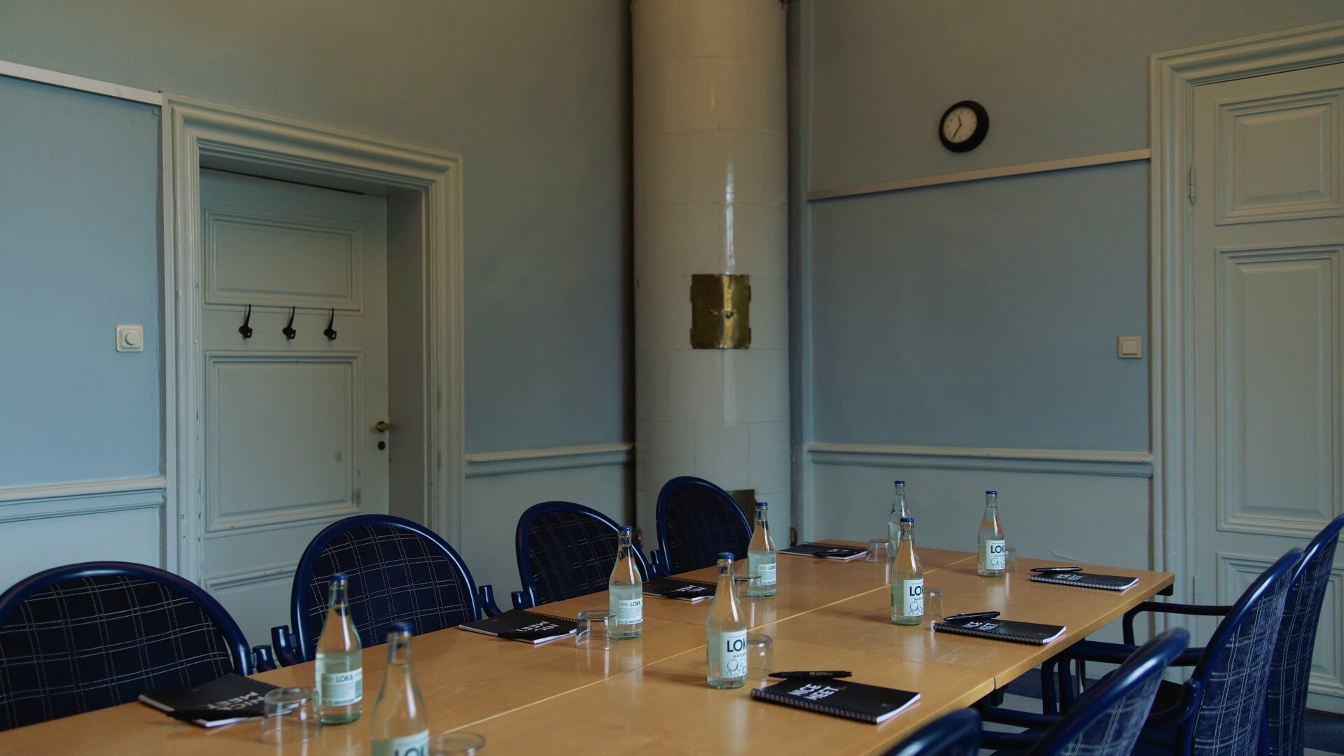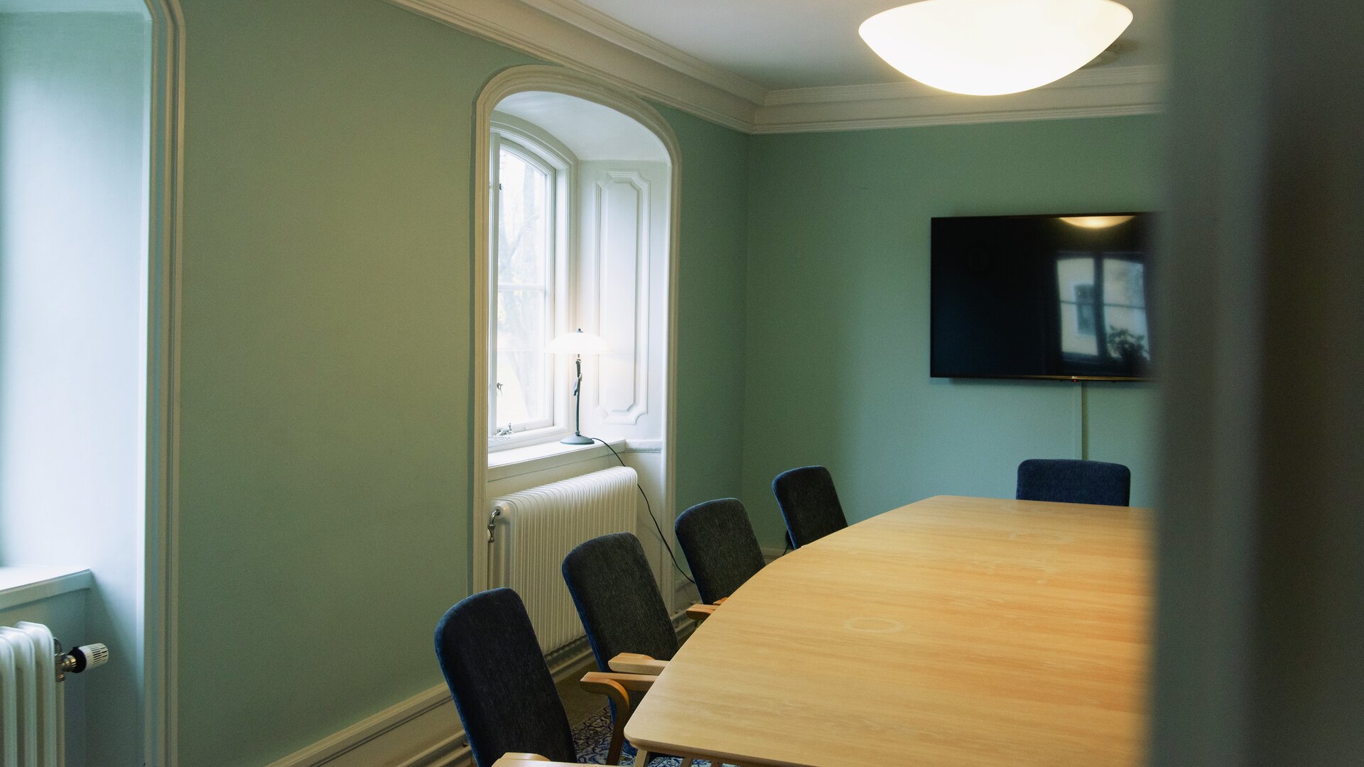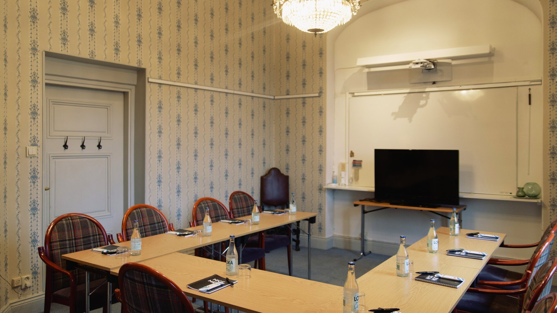 Lokalen Drottningholm ligger på slottets ovanvåning. I anslutning finns ett grupprum med vackra väggmålningar.
