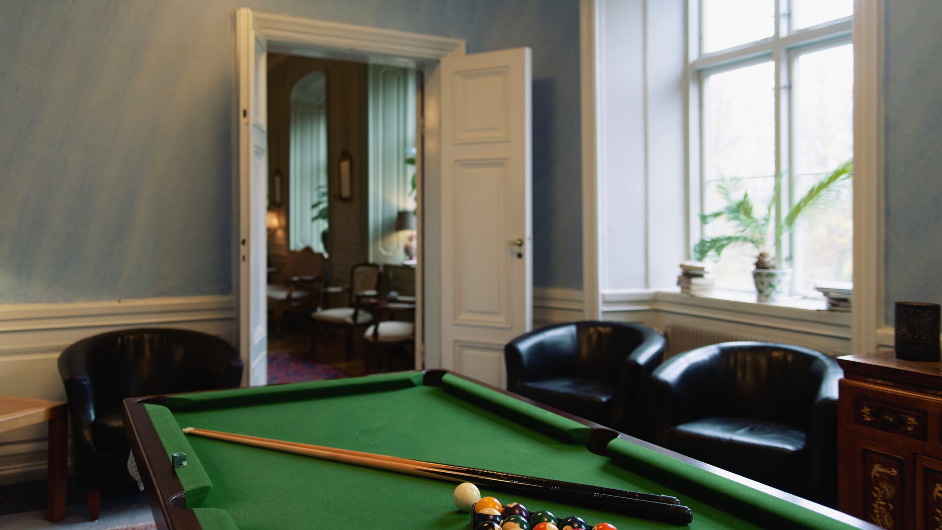 Amyas ligger på slottets ovanvåning. I anslutning till lokalen finns vårt biljardbord med sköna fåtöljer.