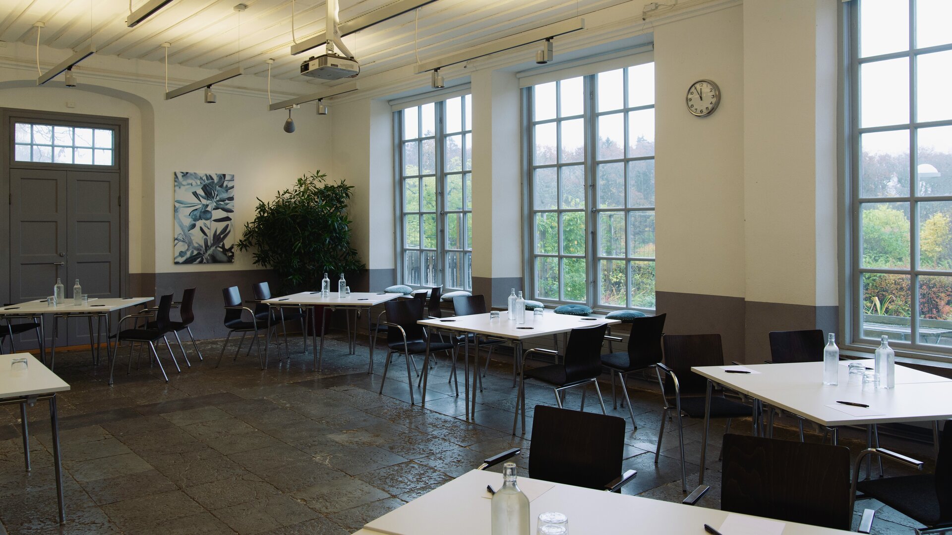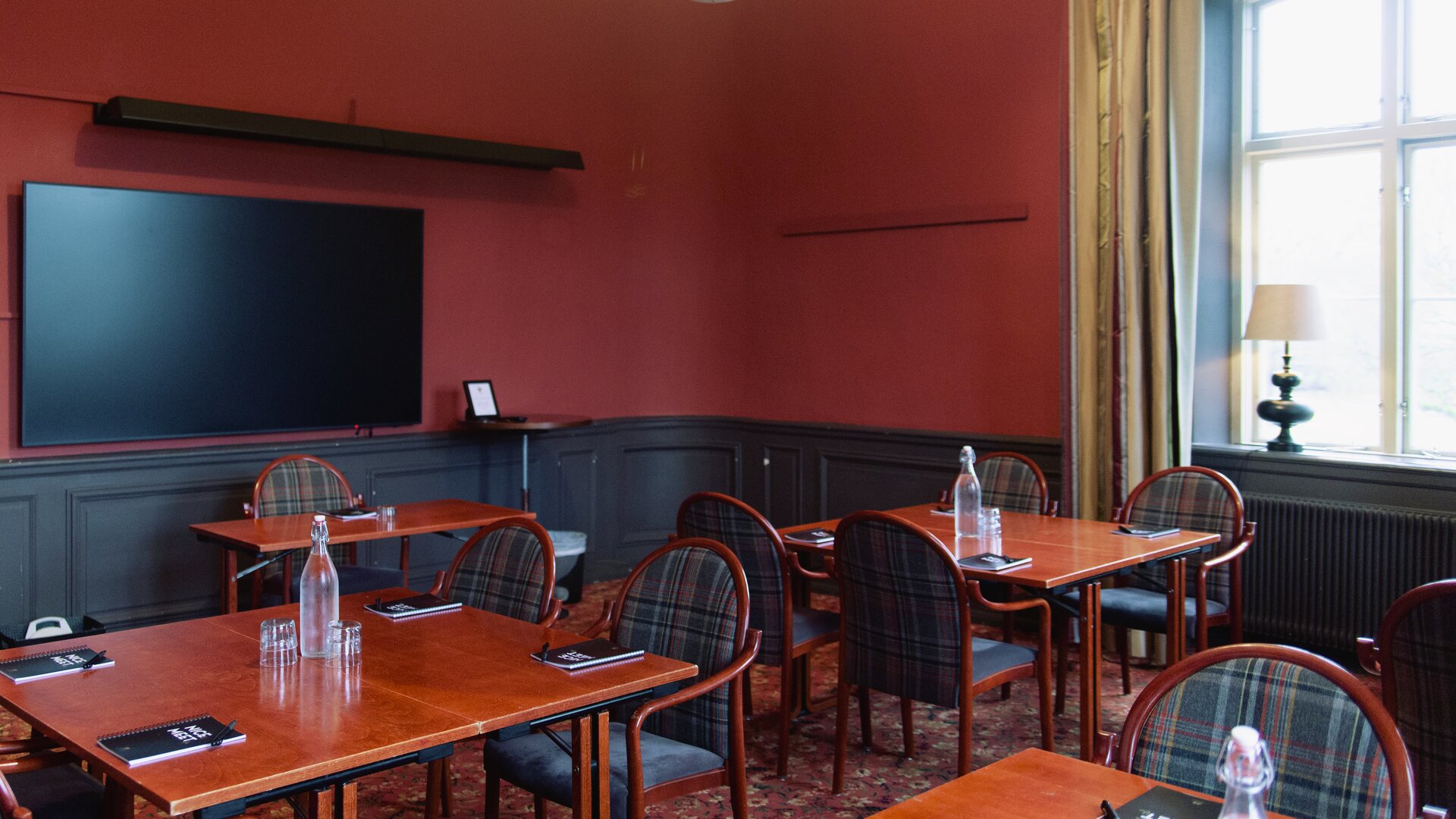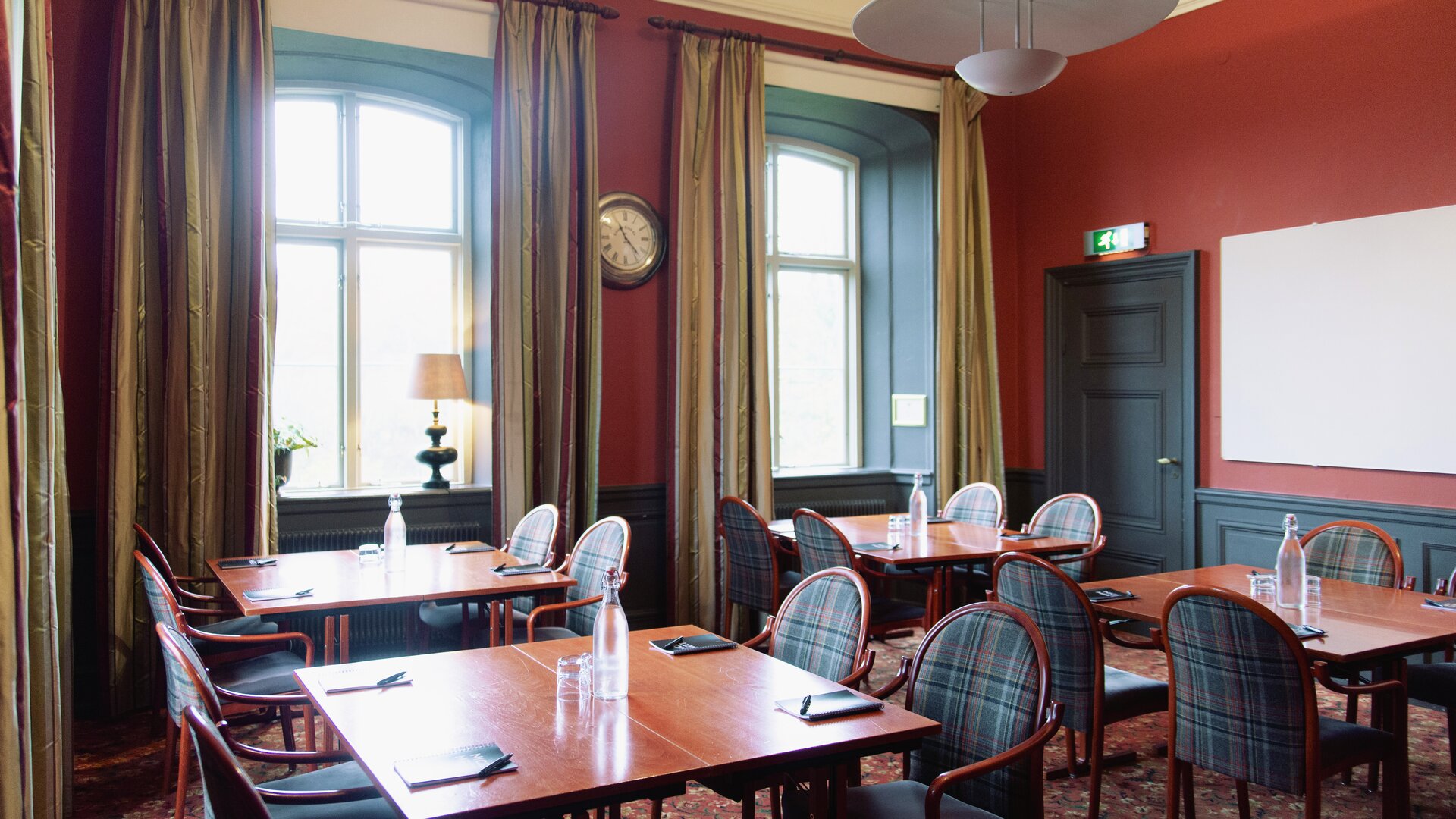 Ängbysalen ligger på slottets ovanvåning. I direkt anslutning till lokalen finns ett grupprum med plats för ca 6 personer.